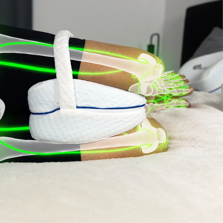 Simplemente coloque el cojín entre o debajo de las rodillas mientras duerme de lado o boca arriba para obtener un soporte óptimo y reducir el dolor.