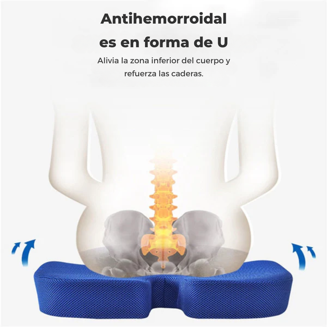 La forma en U minimiza el contacto con el coxis y mejora la circulación sanguínea, siendo ideal para los dolores del nervio ciático.